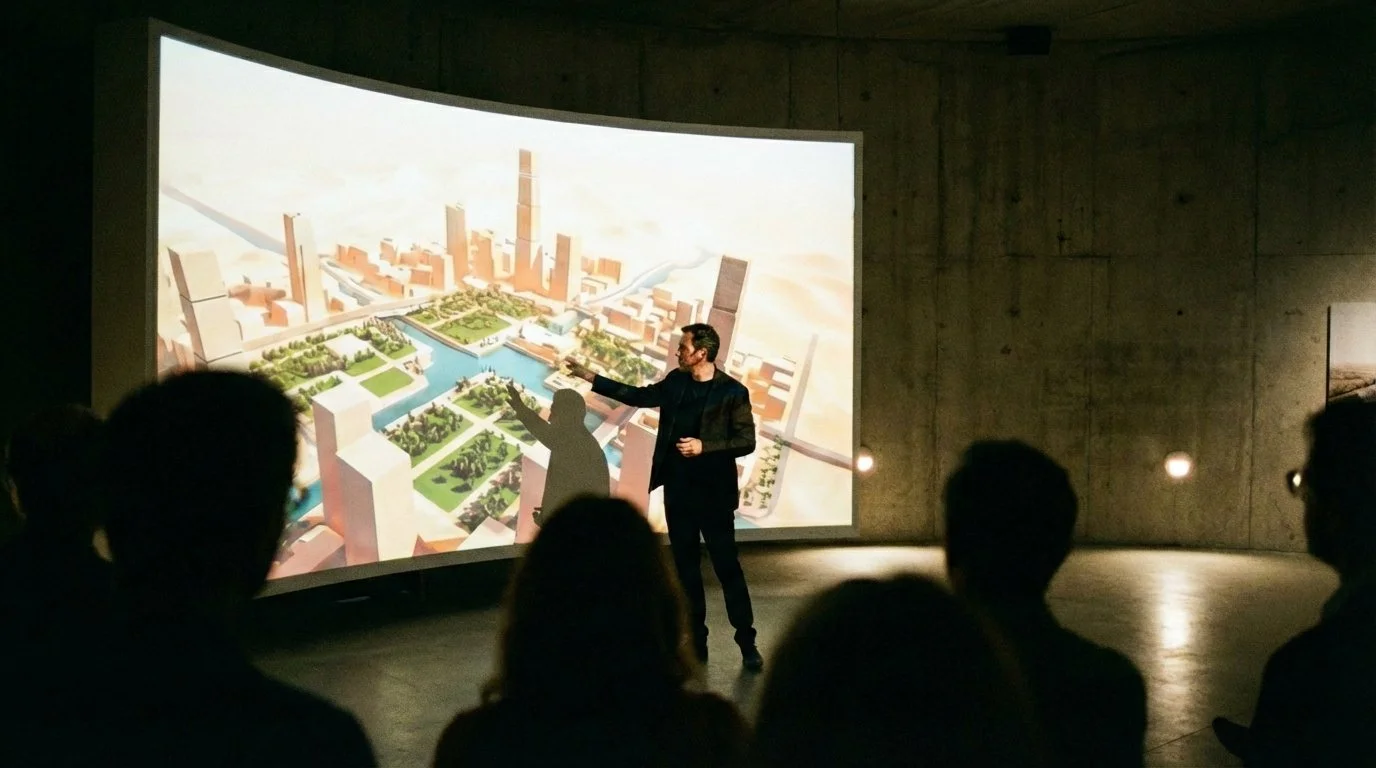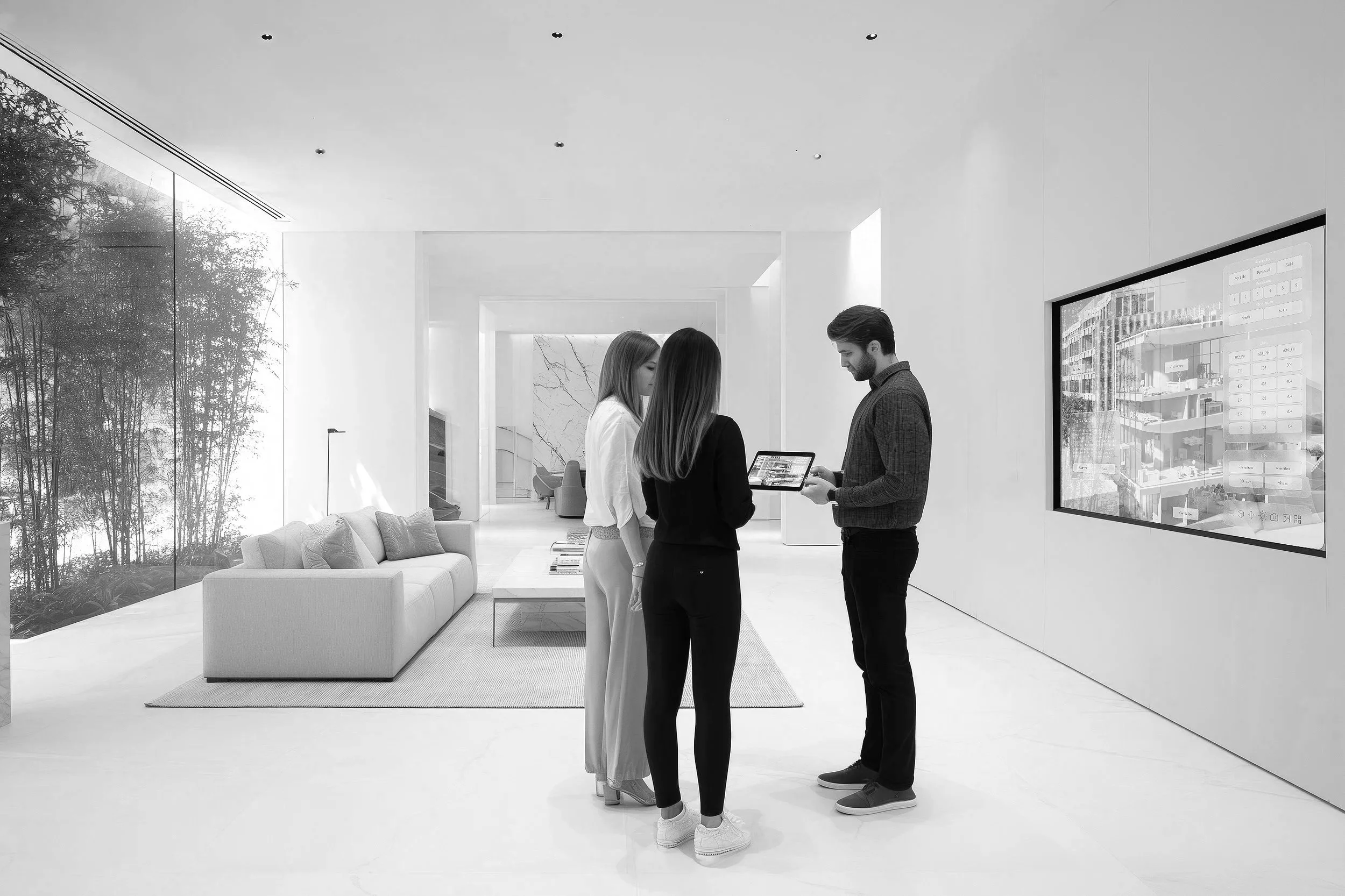 The Interactive Narrative - Abstract plans are translated into immersive, navigable experiences. Leveraging the atmospheric craft of our sister company Darcstudio, we create touch-based applications and visualisations that align stakeholders through a clear, sensory understanding of the project’s future value.