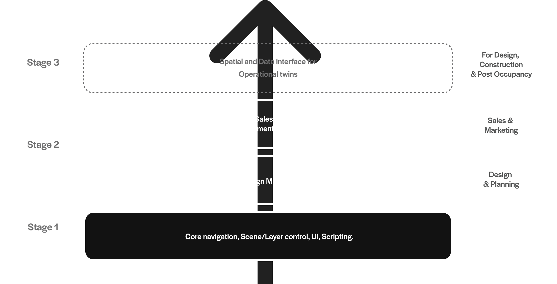 Every project starts with a high-fidelity real-time environment - the base platform. It contains everything needed to explore the project clearly: the collated 3D environment, core navigation, scene/layer control and a clean UI.
