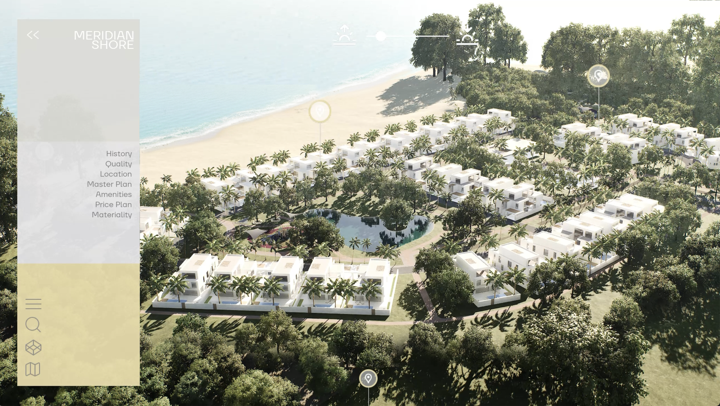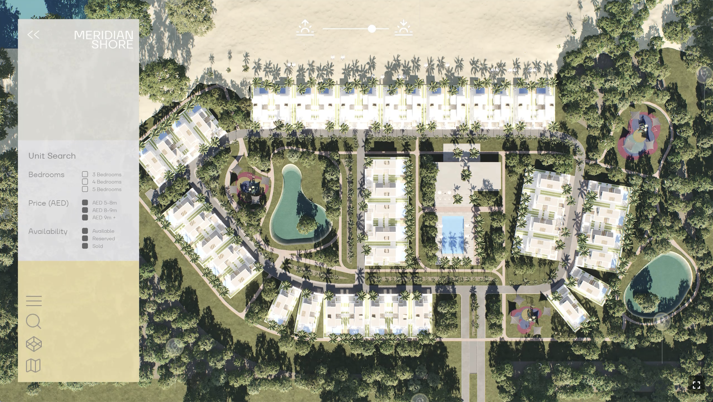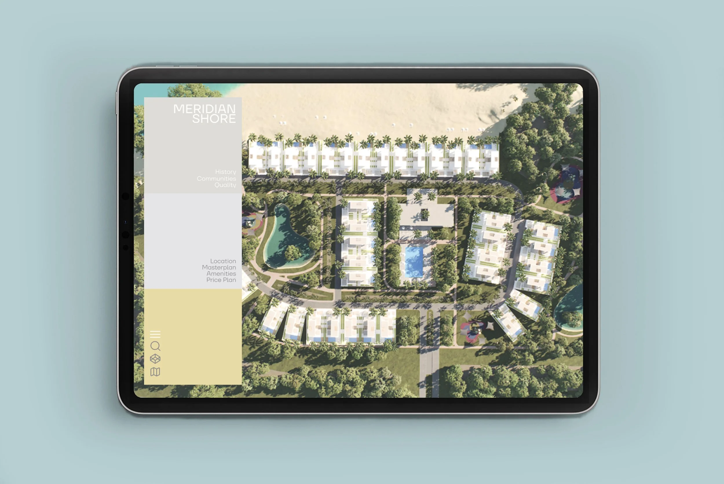 Meridian Shore is an exclusive coastal villa development in Dubai aimed at a global buyer market. To support off-plan sales - many from overseas - the developer needed a high-impact way to communicate location, amenities, villa options and long-term value, while giving agents a unified tool for guiding prospects through the full offering.